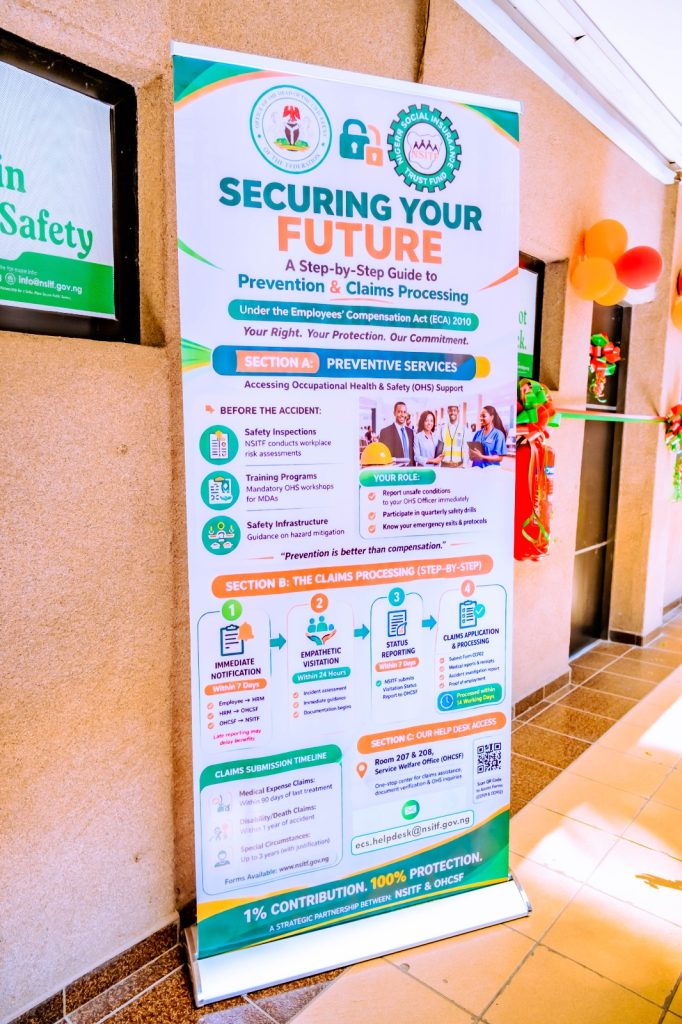 Managing Director/Chief Executive, Nigeria Social Insurance Trust Fund (NSITF), Barr. Oluwaseun Falaye, on Tuesday 21st April 2026, commissioned an Employees’ Compensation Scheme (ECS) Help Desk at the Office of the Head of the Civil Service of the Federation.